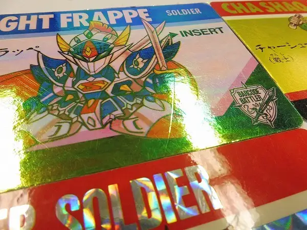 コンビニウォーズ バーコードバトラーから、「小学三年生」プレゼント企画「騎士フラッペ(戦士)」「チャーシューファン(戦士)」「デンターラ(魔法使い)」を含む計9枚です。