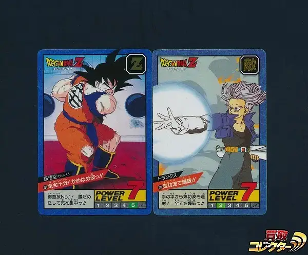 ドラゴンボールカードダス スーパーバトルから、「No.181 孫悟空 気合十分!かめはめ波っ!!」 「No.148 トランクス 気功波で爆破!!」の隠れキラカード2枚です。