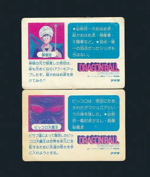 上のカード「No.2 孫悟空」の裏面の上中央、下中央付近に、剥げが若干目立ちます。