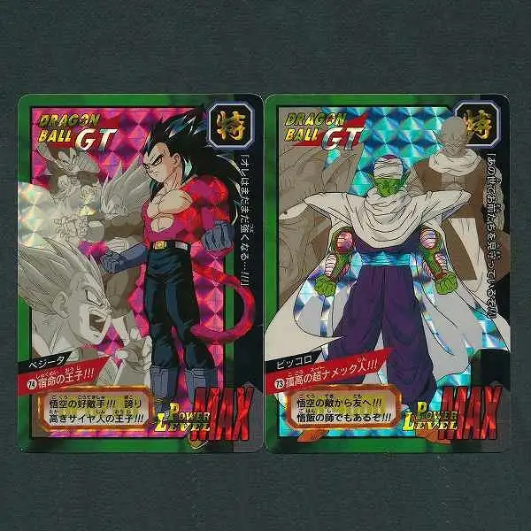 ドラゴンボールカードダス 特別弾から、ベジータ「No.74 宿命の王子!!!」ピッコロ「No.73 孤高の超ナメック人!!!」の2枚です。