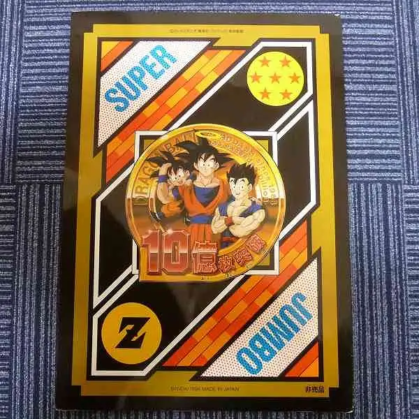 ドラゴンボールカードダスから、本弾10億枚突破記念として、週刊少年ジャンプにて抽選で2000名にプレゼントされた、スーパージャンボカードダスです。