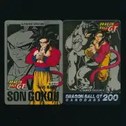ドラゴンボールカードダス 本弾 GT編から、「NO.127 孫悟空」「NO.200 SUPER SAIYAN 4」のゴールドカード2種です。