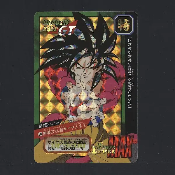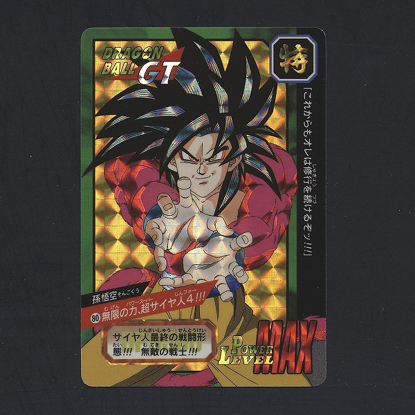 カードダス ドラゴンボール特別弾から、プリズムカード「NO.80 孫悟空 無限の力、超サイヤ人4!!!」です。