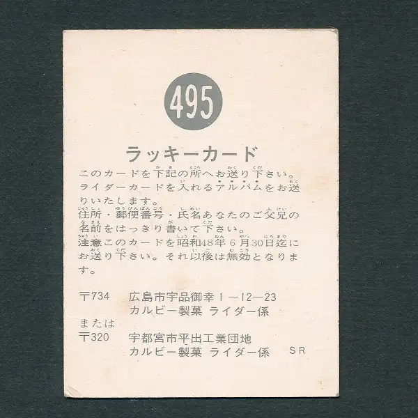 カルビー 旧 仮面ライダースナックカード NO.495 ラッキーカード SR版 買取