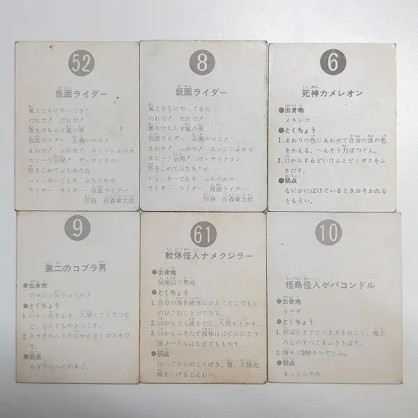 カルビー 旧 仮面ライダーカード 表25局 表14局 まとめ 計6枚 No. 52 8 6 9 61 10 買取