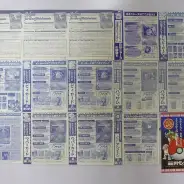 画像右下端の袋とじのみ開封済みで、若干傷みが見られますが、それ以外シートから剥がすタイプのカードは、全て未剥がしの状態です(端部分が微かに剥がれかけているものも含まれます)。