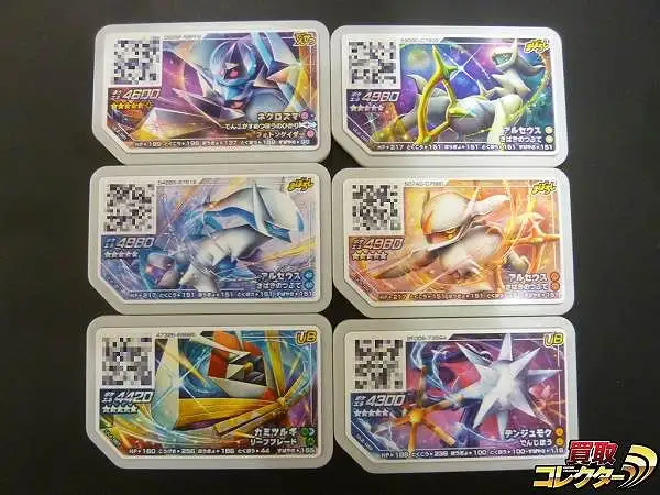ポケモンガオーレから、グレード5「ネクロズマ」「アルセウス(ノーマル)」「アルセウス(みず)」「アルセウス(ほのお)」「カミツルギ」「デンジュモク」の6枚です。