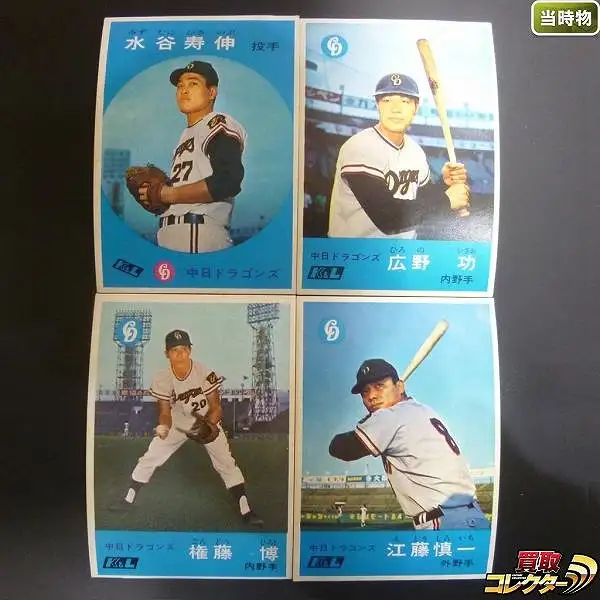 K&L カバヤ リーフ プロ野球 カード 中日ドラゴンズ 4枚 水谷寿伸 広野功 権藤博 江藤慎一 当時物 買取