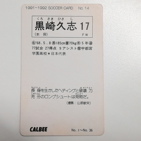 カルビー Jリーグチップス 1991~1992 サッカーカード No.14 黒崎久志 初版