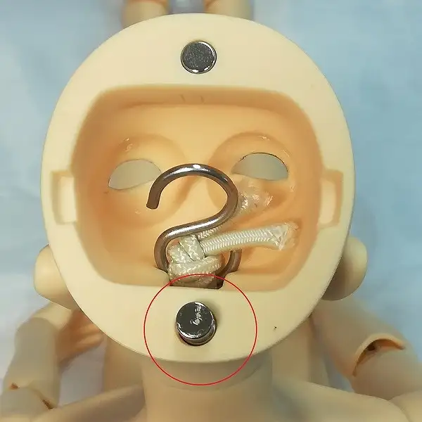 ヘッド内側のマグネットの接着が剥がれており、もう一方のマグネットに張り付いています。