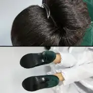 髪を留めているゴムが劣化により破断しております。