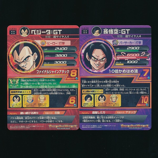 ドラゴンボールヒーローズ ベジータ:GT HJ6-53 孫悟空:GT HJ6-50 買取
