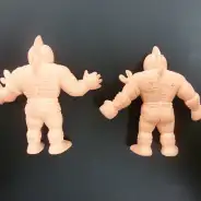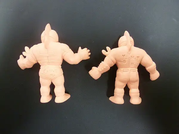 画像右側「キン肉マン ソルジャー」は、両足の辺りに微かな赤い色移りが見られます。