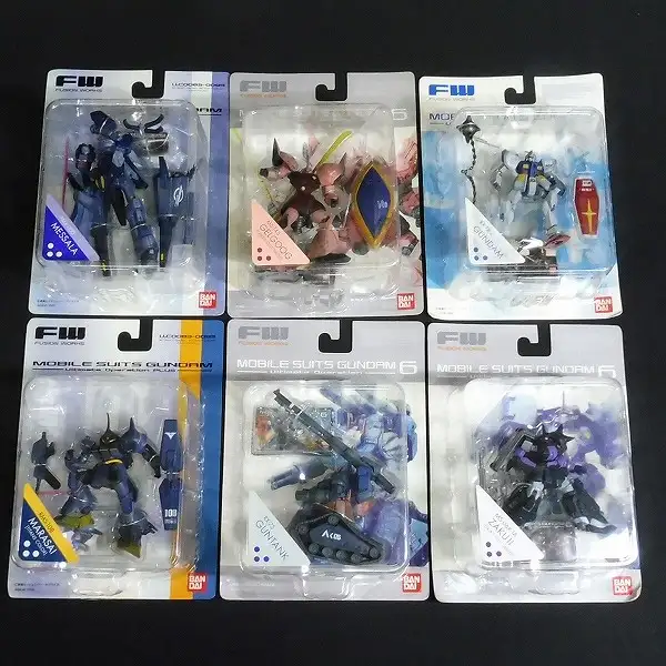 画像2枚目の6点のみ開封品ですが、各本体とガンダム以外のお菓子はブリスターから取り外されていない状態です。