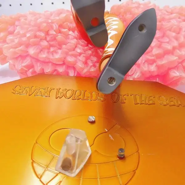 ドフラミンゴの台座の突起が破損しており、足裏に破損した部分が入ったままになっています。