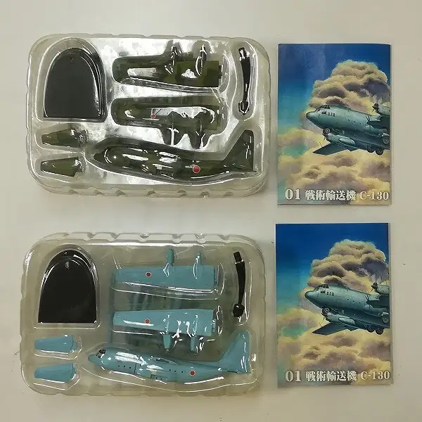 「C-130 航空自衛隊 第一輸送航空隊(迷彩塗装)」のパーツの一部が外れ、ブリスター内で泳いでいます。