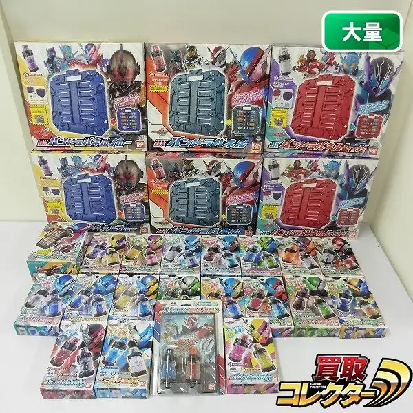 「DXユニレイサーフルボトル」「DXサメバイクフルボトル&仮面ライダービルドDVDセット」と「DXパンドラパネル」のレッドとブルー各2点が未開封品、他はすべて開封品です。