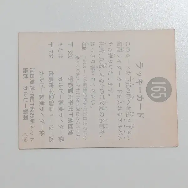 カルビー 旧 仮面ライダーカード ラッキーカード No.165 SR6
