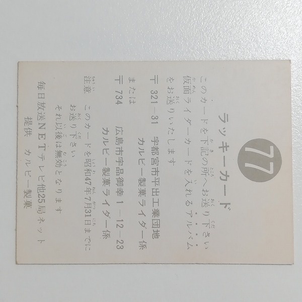 カルビー 旧 仮面ライダーカード ラッキーカード No.77