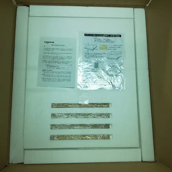 土台部分の内袋はテープ留めが剥がされておらず、ディスプレイテーブルは未組立の状態です。