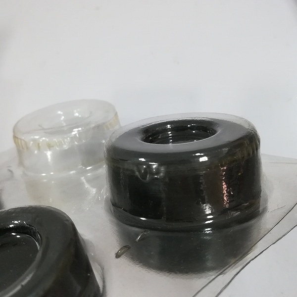 ゴムタイヤを収めているブリスターはヘッダーとホチキス止めの一部が外れており、タイヤの一部が取り出せる状態です。