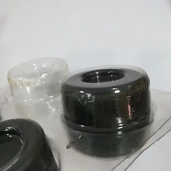 ゴムタイヤを収めているブリスターにはタイヤに反応して溶けた跡と思われる表面の歪みや凹凸が生じております。
