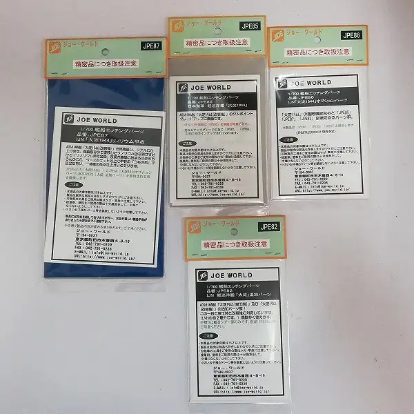 「ジョー・ワールド 1/700 エッチングパーツ」4種はいずれも袋が未開封の状態の未使用品です。
