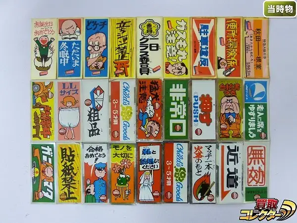 それ以外はシールによって、多少の傷みや汚れ、経年による色ヤケ等が見られますが、当時物として比較的綺麗な状態のシールが多めと思われます。