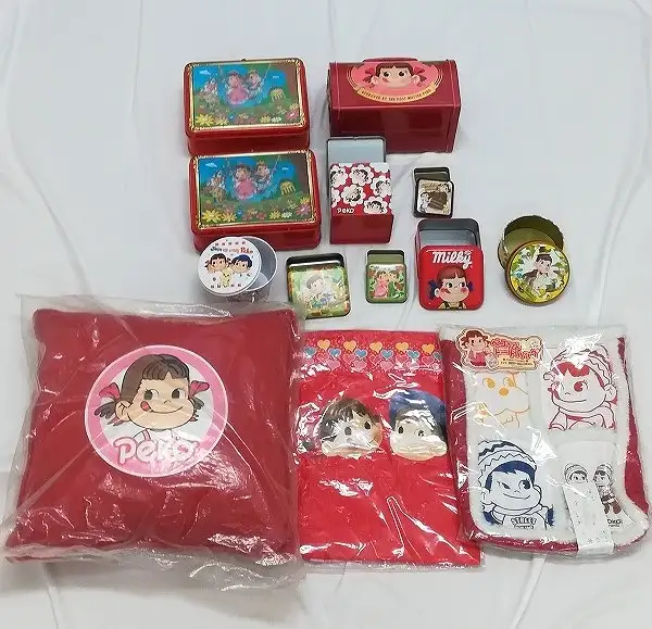 不二家 ペコちゃん グッズ まとめ クッション マグカップ 貯金箱 お皿 トートバッグ ペンケース&ペンセット 他 買取